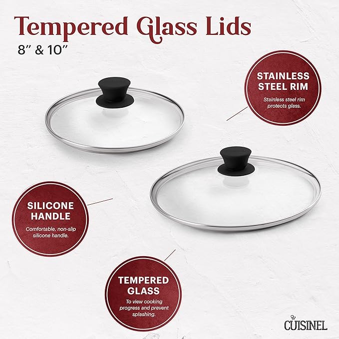 Cast Iron Skillet Set - 8" + 10"-Inch Frying Pans + Glass Lids + Silicone Handle Holder Grip Covers - Pre-Seasoned Oven Safe Cookware - Indoor/Outdoor Use - Grill, BBQ, Fire, Stovetop, Induction Safe