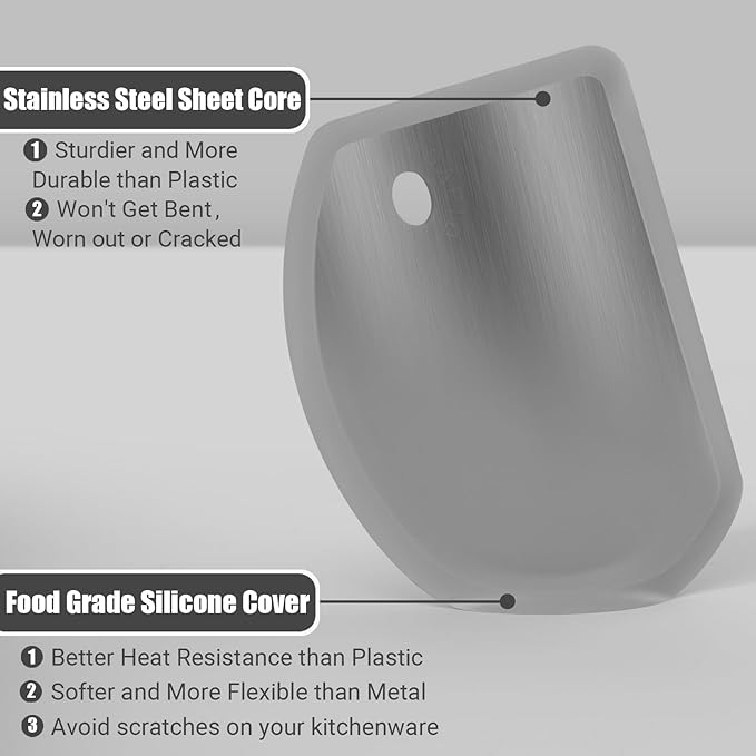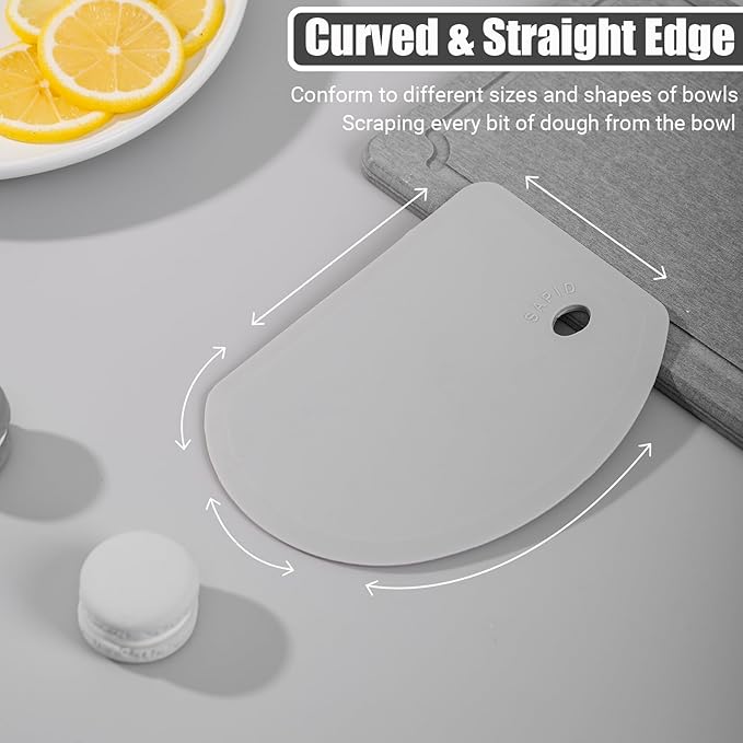 Sapid Flexible Curved Edge Silicone Bowl Scraper(5.98"x4.3"), Food Grade Dough Scraper for Baking Sourdough Bread, Cake, Multipurpose Kitchen Dish Scrapers, Easy to Clean (1, Gray)
