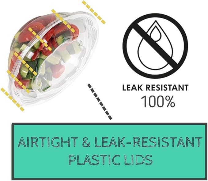 Smygoods Disposable Plastic Salad Bowls with Airtight Lids Ideal for Meal Prep, Takeout, Catering, Parties, Picnics, and Food Storage, Stackable, Leak-Proof