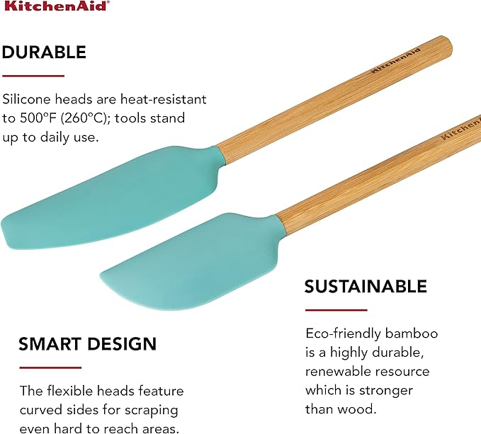 KitchenAid Bamboo Spatula Set, 2-Piece, Aqua Sky