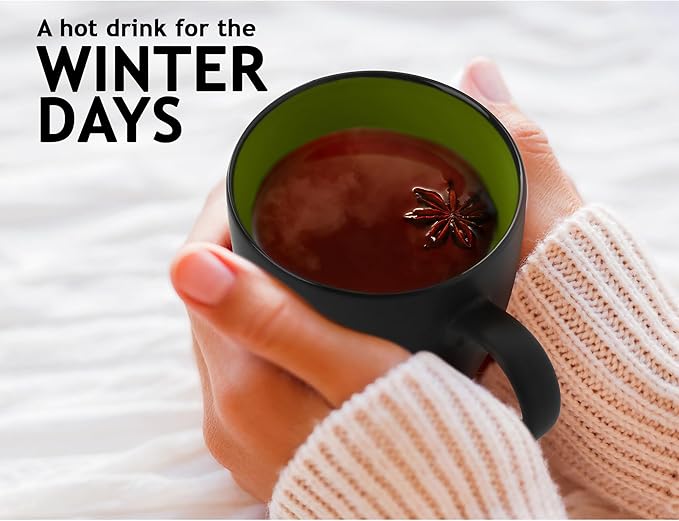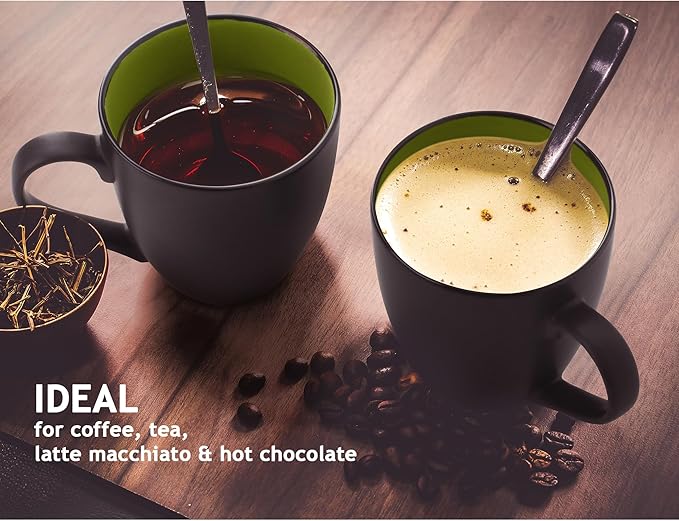 MIAMIO - Set of 6 Stoneware Coffee Mugs 12 Ounce/Cup Set - Le Papillon Collection (Black-Green)
