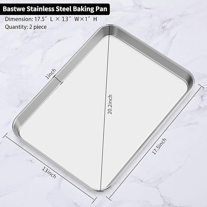 Baking Sheet Set of 2, Bastwe 18 inch Commercial Grade Stainless Steel Baking Pan, Professional Bakeware Oven Tray, Healthy & Non-toxic, Rust Free & Mirror Finish, Easy Clean & Dishwasher Safe