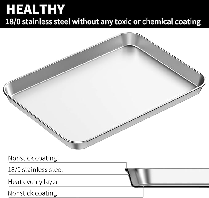 About This Healthy Materials: The baking sheet is made of 18/0 Stainless Steel which is without toxic chemical coating. It... Read more