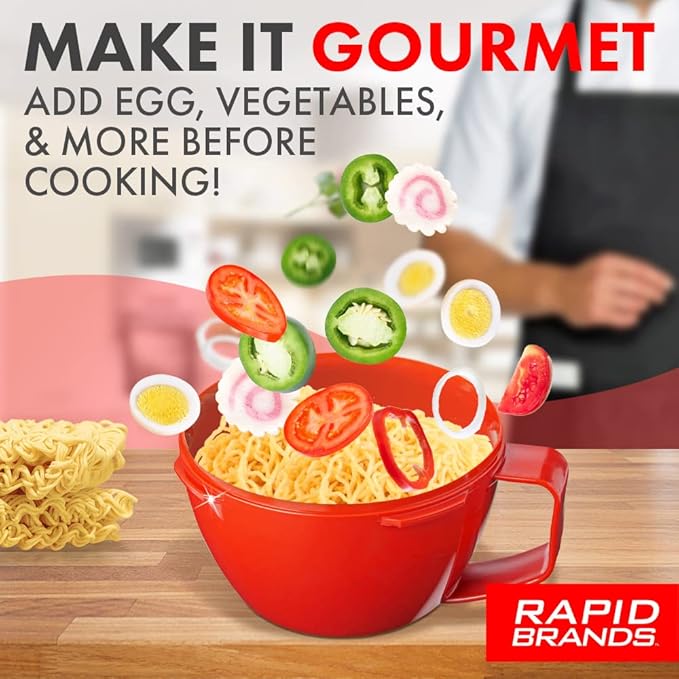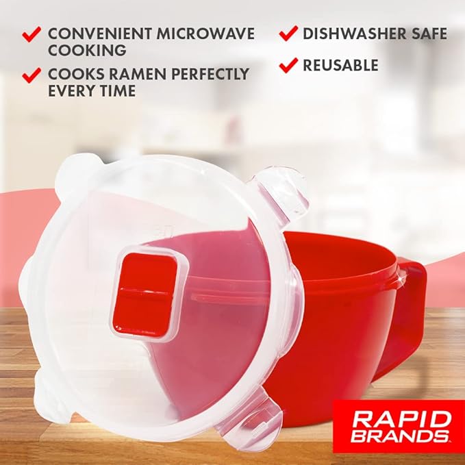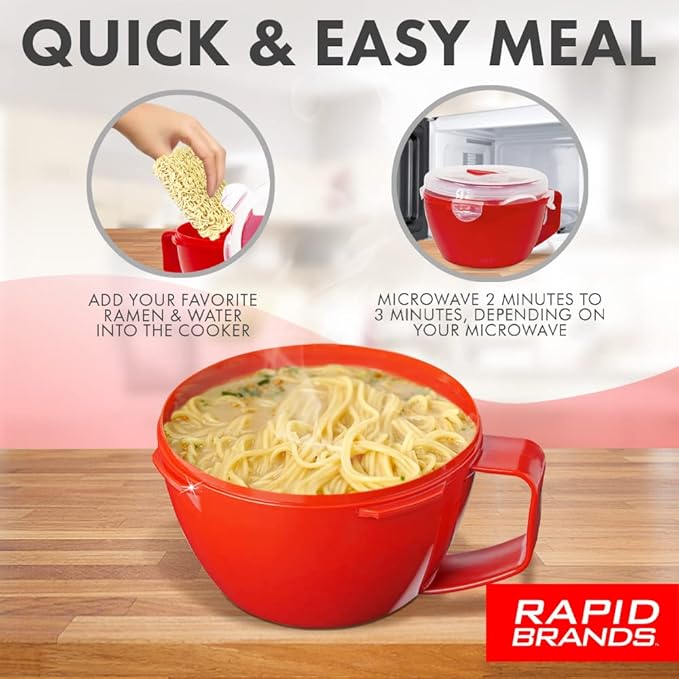 Rapid Plastic Noodle/Soup Bowl | Microwave Soup & Noodles in Minutes | Perfect for Dorm, Small Kitchen, or Office | Dishwasher-Safe, Microwaveable, & BPA-Free