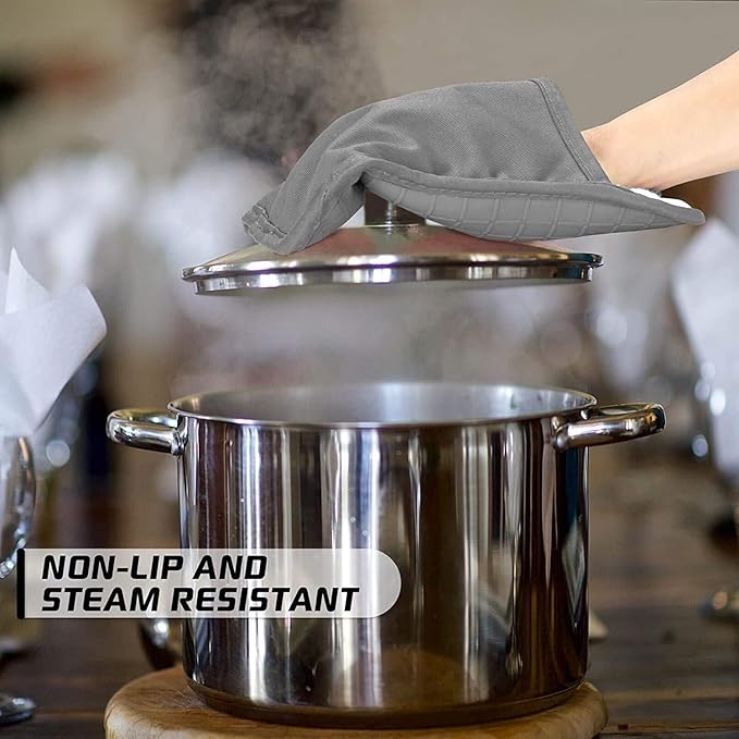 HOMWE Silicone Oven Mitts and Pot Holders for Kitchen & Baking - Set of 4 Heat-Resistant, Heavy-Duty Cooking Mittens w/Non-Slip, Textured Grip (Black)