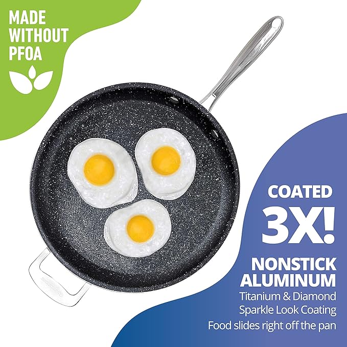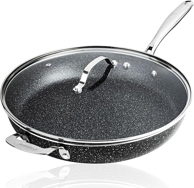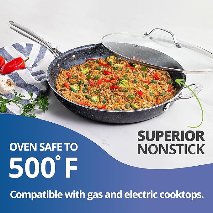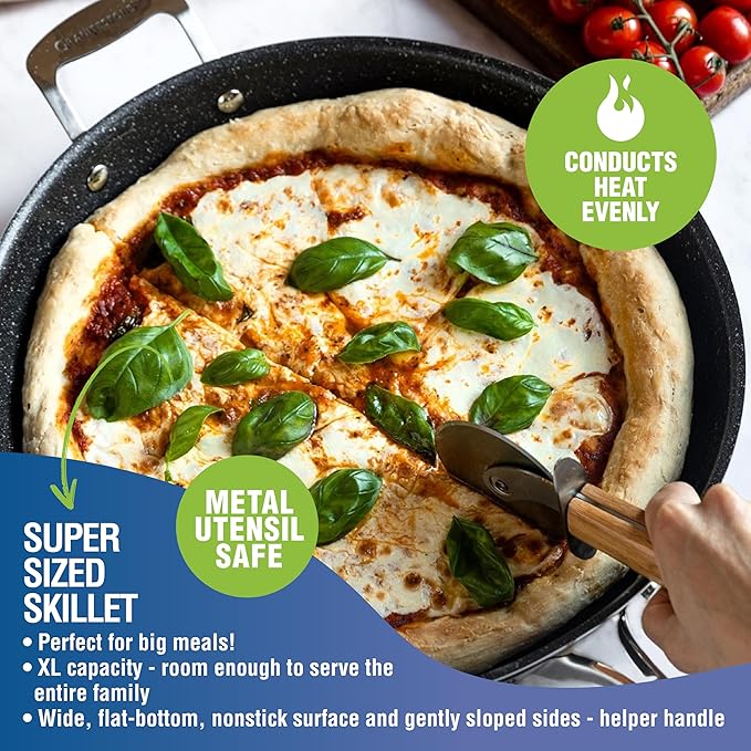 Granitestone 14 Inch Pan for Cooking, Family Sized Large Non Stick Frying Pans Skillet for Eggs, Omelette, with Helper Handle, PFOA PFOS Free Oven & Dishwasher Safe - LID NOT INCLUDED