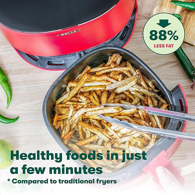 BELLA 3 Qt Touchscreen Air Fryer Oven and 5-in-1 Multicooker with Removable Nonstick Dishwasher Safe Crisping Tray and Basket, 1400 Watt Heating System, Matte Red