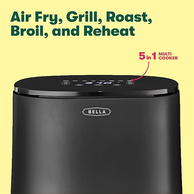 BELLA 2.9QT Touchscreen Air Fryer, No Pre-Heat Needed, No-Oil Frying, Fast Healthy Evenly Cooked Meal Every Time, Dishwasher Safe Non Stick Pan and Crisping Tray for Easy Clean Up, Matte Black