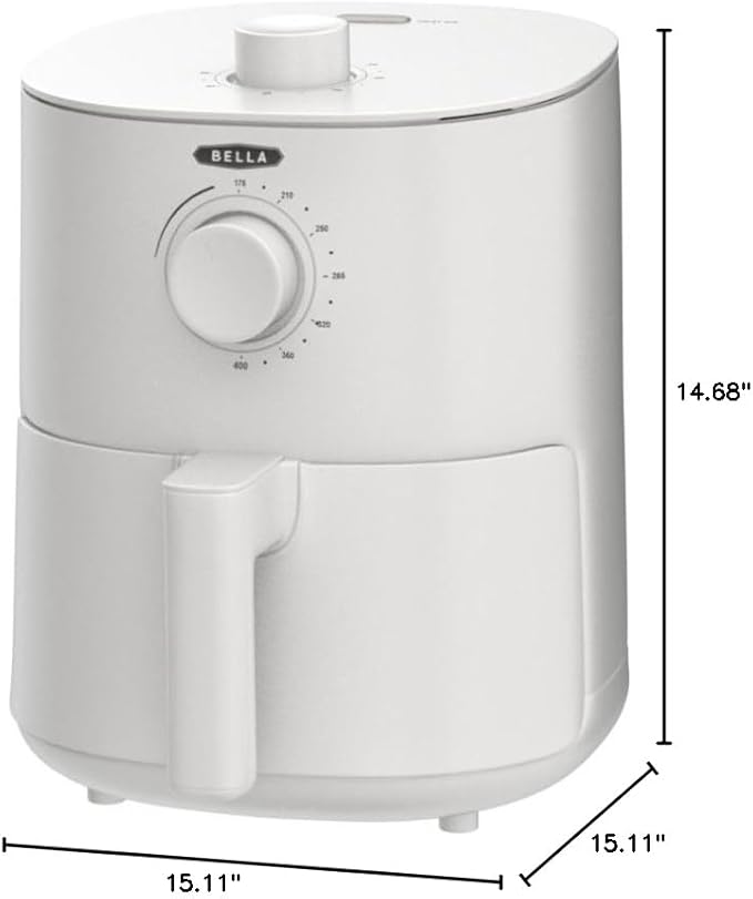 BELLA 2.9QT Manual Air Fryer, No Pre-Heat Needed, No-Oil Frying, Fast Healthy Evenly Cooked Meal Every Time, Removeable Dishwasher Safe Non Stick Pan and Crisping Tray for Easy Clean Up, Matte White