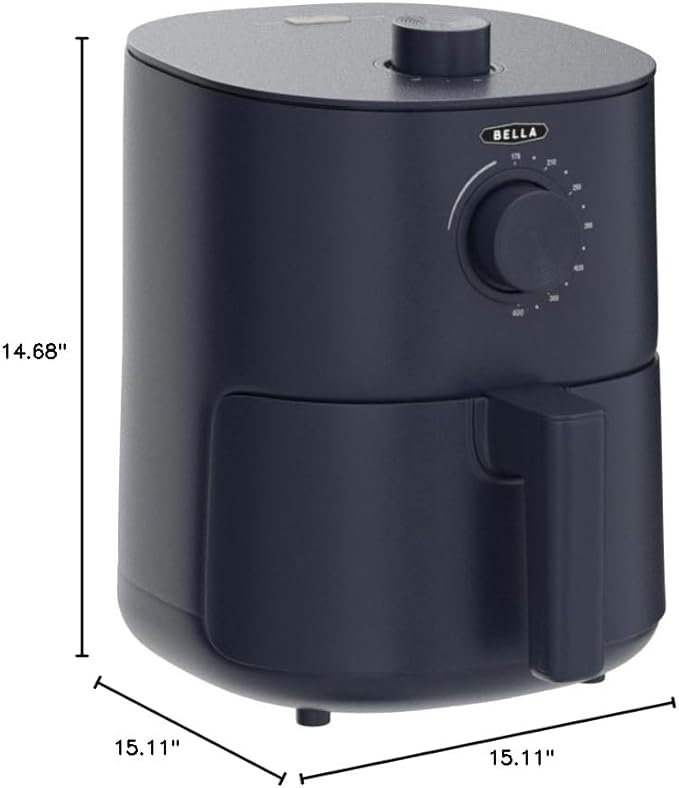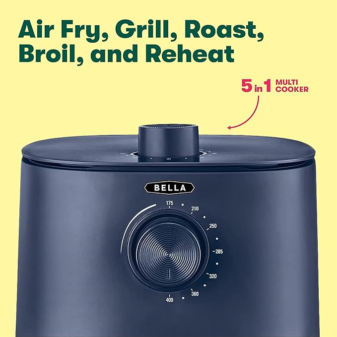 BELLA 2.9QT Manual Air Fryer, No Pre-Heat Needed, No-Oil Frying, Fast Healthy Evenly Cooked Meal Every Time, Removeable Dishwasher Safe Non Stick Pan and Crisping Tray for Easy Clean Up, Matte Blue