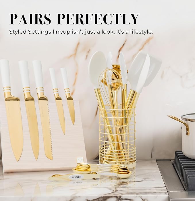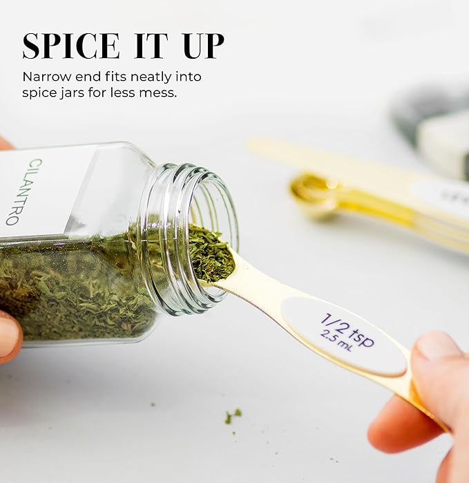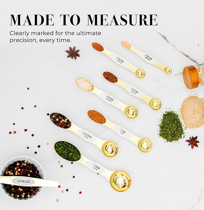 White and Gold Magnetic Measuring Spoons – Stainless Steel Double Sided Measuring Spoons for Cooking and Baking – Cute White and Gold Kitchen Accessories, Ideal for Gifting