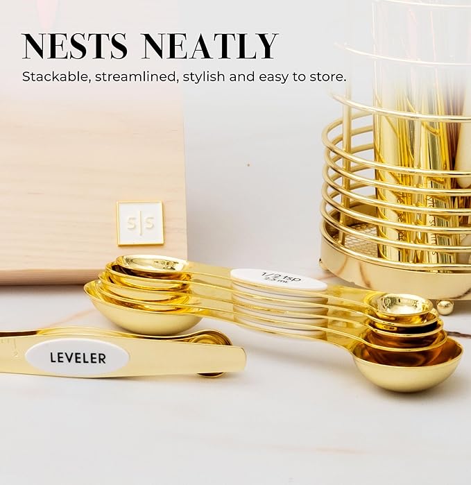 About This ✔ UNIQUE KITCHEN GADGETS GOLD MEASURING SPOONS SET WITH SUPERIOR DESIGN – double sided measuring spoons design accommodates... Read more