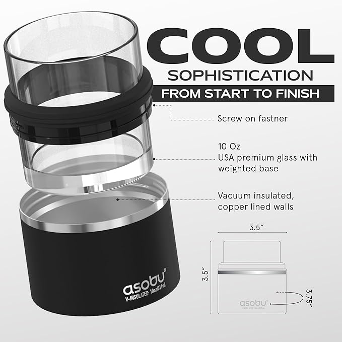 asobu Whiskey Glass with Insulated Stainless Steel Sleeve, 10.5 ounces (Smoke)