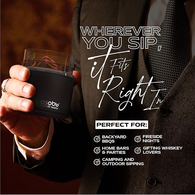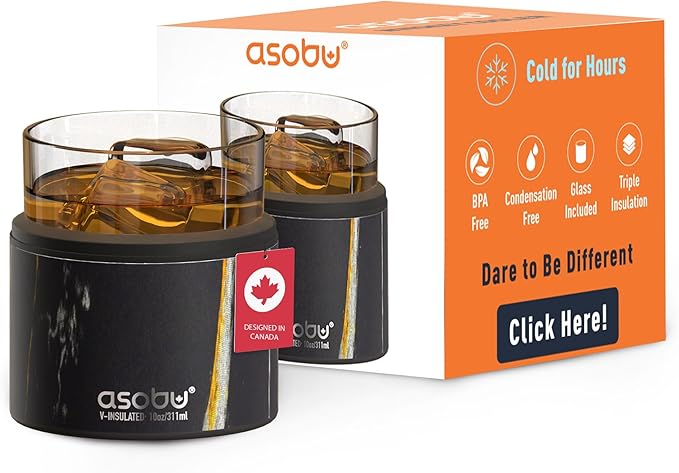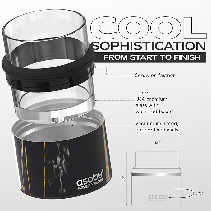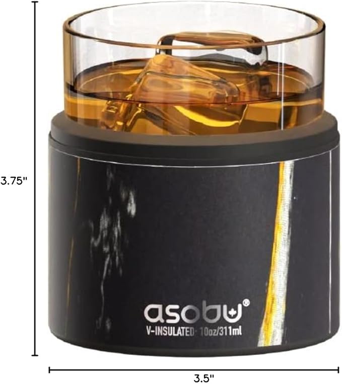 asobu Whiskey Glass with Insulated Stainless Steel Sleeve, 10.5 ounces (Midnight Marble)