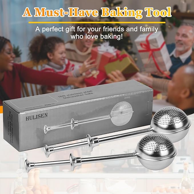 HULISEN Set of 2 Flour Duster for Baking, Powdered Sugar Shaker Duster, 18/8 Stainless Steel Pick Up and Dust Flour Sifter with Spring-operated Handle for Easy One-handed Operation