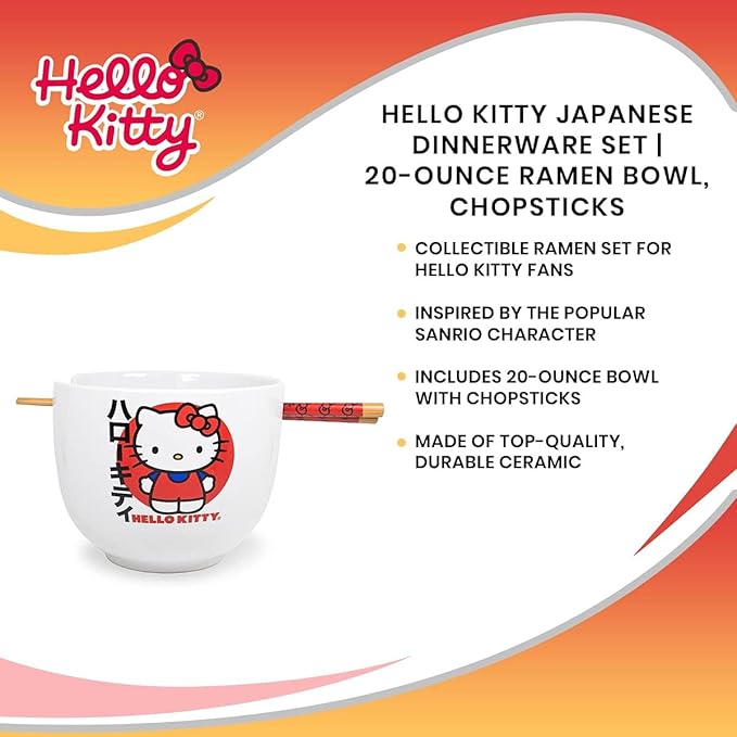 About This RAMEN BOWL SET: Our kawaii Hello Kitty Japanese logo ceramic ramen bowl with chopsticks holds 20 ounces of... Read more