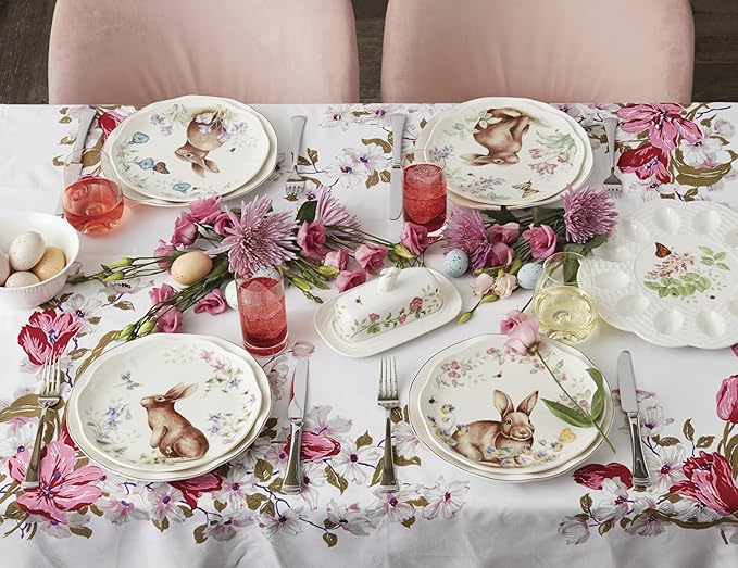 Lenox, Dinnerware Set, Butterfly Meadow Bunny 4-Piece Accent Plate Set, Service For 4, Microwave And Dishwasher Safe, Porcelain Plates, Easter Plates, Dish Set, Home And Kitchen (Assorted, 4 Pieces)