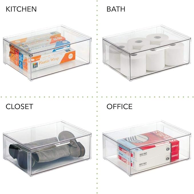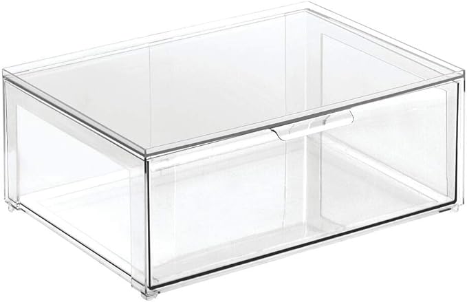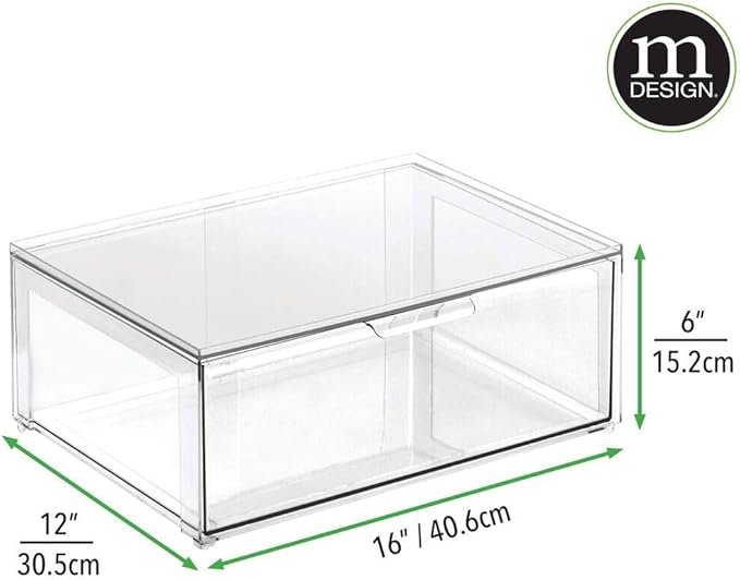 mDesign Plastic Stackable Closet Storage Organizer Bin Containers with Front Pull Drawer for Cabinet, Desk, Shelf, Cupboard, or Dresser Organization - Lumiere Collection - Clear