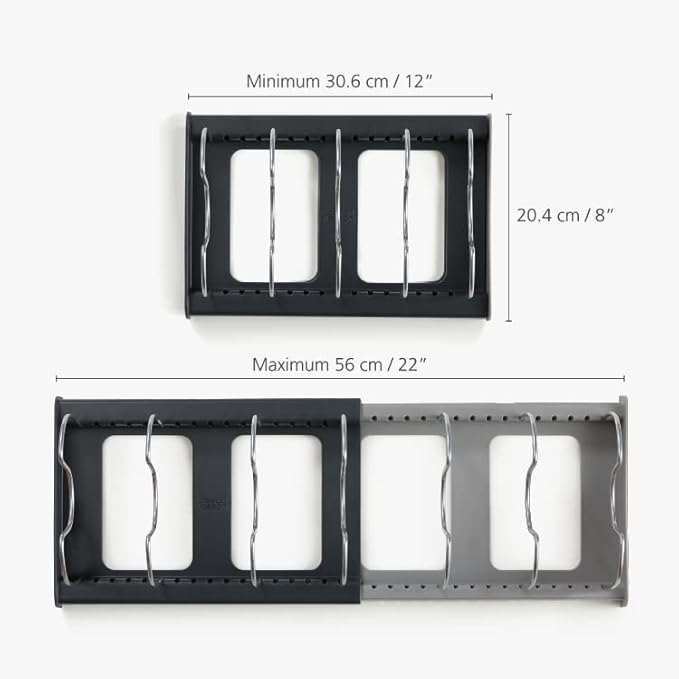Joseph Joseph DrawerStore Expanding Cookware Organizer, Space saving storage for pan lids, baking trays - Grey