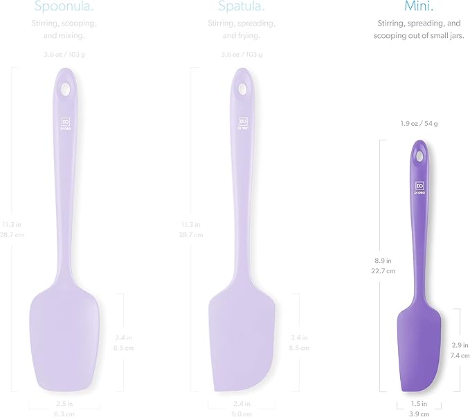DI ORO Mini Spatula - Small Spatulas Silicone Heat-Resistant up to 600°F - Silicone Kitchen Scraper for Baking & Cooking BPA Free - Mixing Spatula Dishwasher Safe - Nonstick Cookware Safe (Lavender)