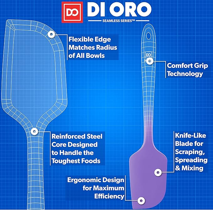 DI ORO Silicone Spatula - 600°F Heat-Resistant Rubber Kitchen Spatula for Baking, Scraping, & Mixing - BPA Free Nonstick Cookware Safe Flexible Utensil for Cooking - Dishwasher Safe (Lavender)