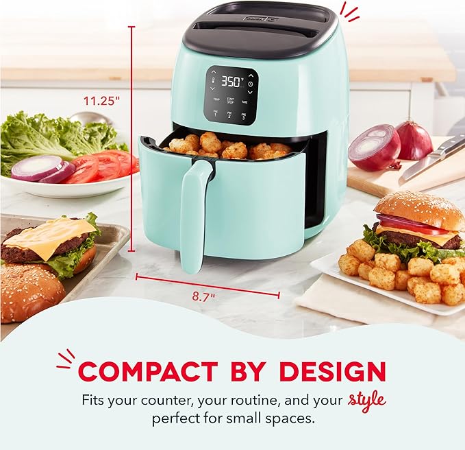 DASH Tasti-Crisp™ Electric Air Fryer Oven, 2.6 Qt., Aqua – Compact Air Fryer for Healthier Food in Minutes, Ideal for Small Spaces - Auto Shut Off, Digital, 1000-Watt