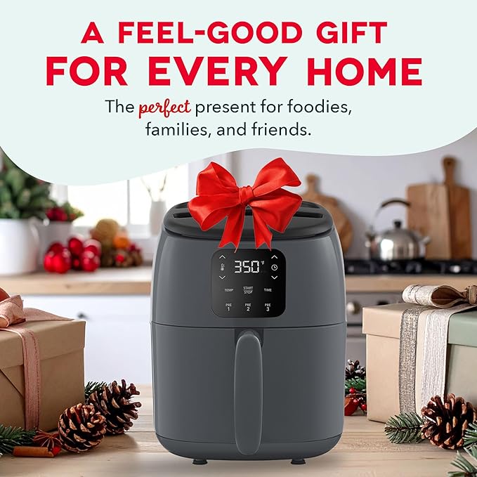 DASH Tasti-Crisp™ Electric Air Fryer Oven, 2.6 Qt., Grey – Compact Air Fryer for Healthier Food in Minutes, Ideal for Small Spaces - Auto Shut Off, Digital, 1000-Watt