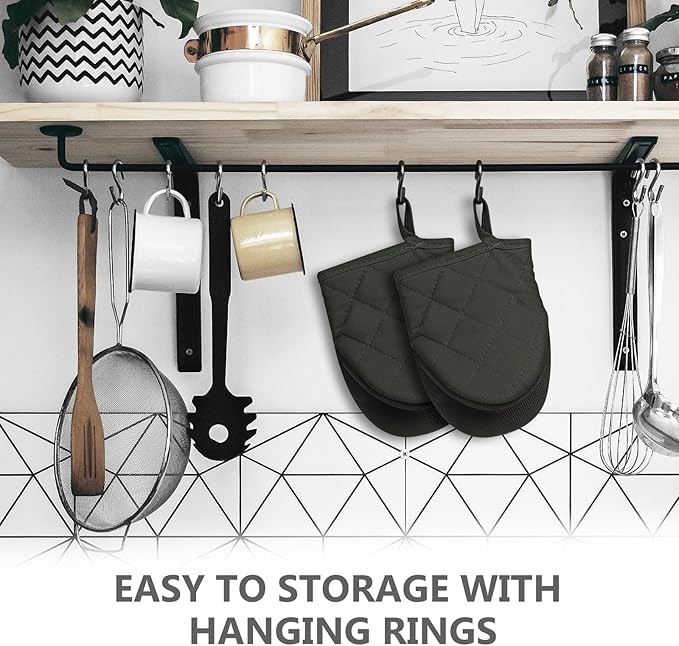 1 Pair Short Oven Mitts, Heat Resistant Silicone Kitchen Mini Oven Mitts for 500 Degrees, Non-Slip Grip Surfaces and Hanging Loop Gloves, Baking Grilling Barbecue Microwave Machine Washable (Gray)