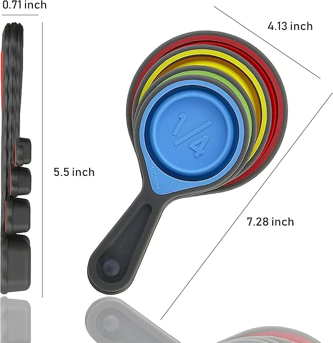 Collapsible Silicone Soft Measuring Cups and Measuring Spoons,8 pieces Portable Food Grade Silicone Measurement Cup for Liquid & Dry Measuring Baking &Utensils & Travel Measuring Cup,space saver
