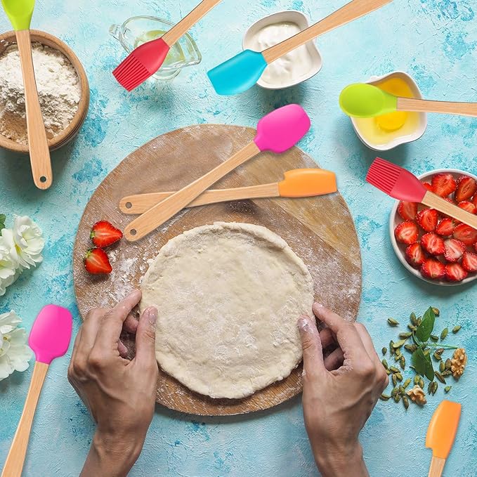Wood Handled Mini Spatula Mini Silicone Baking Spatulas Set Silicone Brush with Wooden Handles, Spoon, Spatula for Kitchen Cooking Mixing (5)