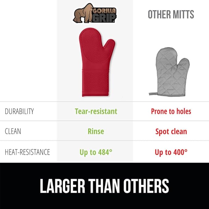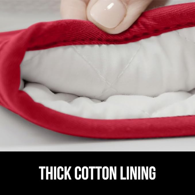 GORILLA GRIP BPA-Free Soft Silicone Oven Mitts, 14.5x8.3, Heat Resistant and Waterproof Cooking Gloves, Thick Cotton Lining, Flexible Gripping Kitchen Potholders Set of 2, Christmas Kitchen Decor, Red
