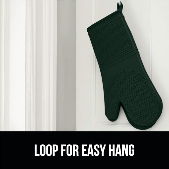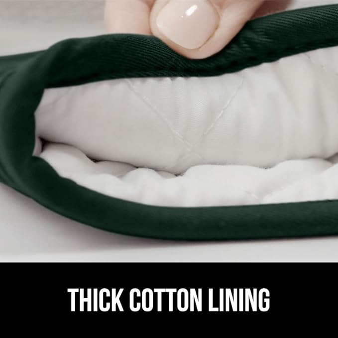 GORILLA GRIP BPA-Free Soft Silicone Oven Mitts, Heat Resistant and Waterproof Cooking Gloves, Thick Cotton Lining, Flexible Gripping for Baking Grilling, Kitchen Potholders Set, 12.5x8.3, Hunter Green