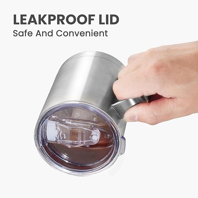 MEWAY 12oz Coffee Mug With Handle,Stainless Steel Insulated Travel Tumblers With Sliding Lid,Double Wall Vacuum Camping Cup for Hot & Cold Drinks Tea (Sliver,Set of 1)