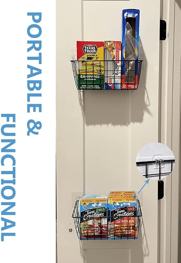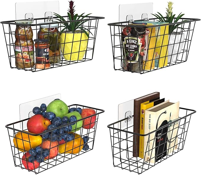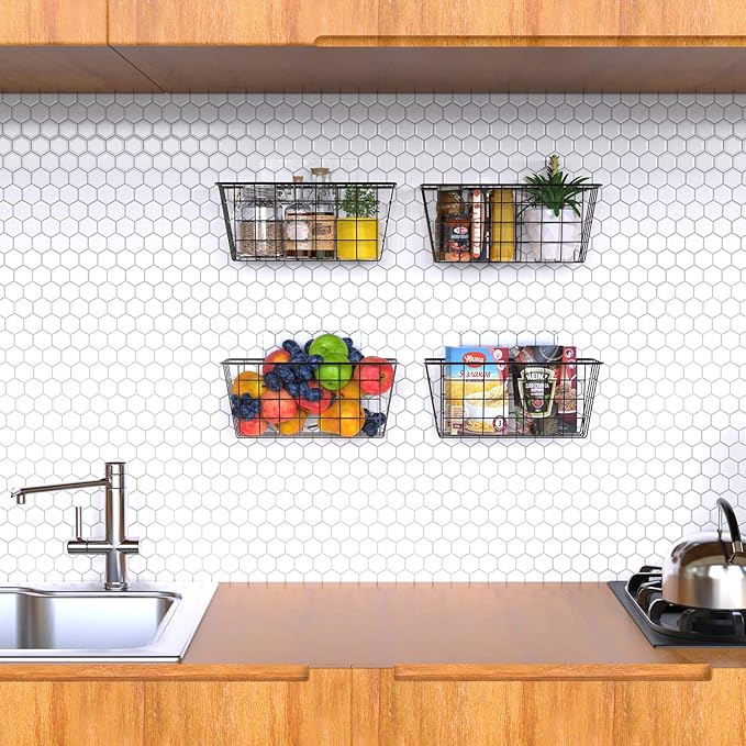 MaraFansie Over the Cabinet Door Organizer Wall Wire Baskets Hanging Kitchen Basket Shelf for Cabinet & Pantry Organization and Kitchen, Bathroom, Bedroom Storage, with Adhesive, 4 Pack