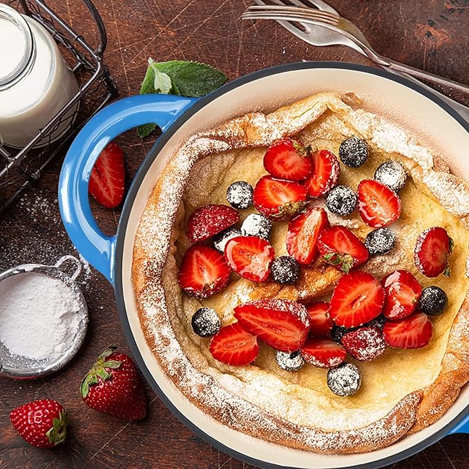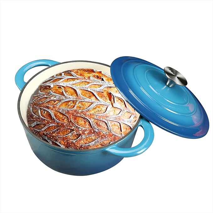 Enameled Cast Iron Dutch Oven with Self Basting Lid Non-stick Enamel Coated Dutch Oven Camping Suitable For Variety Stovetops Dutch Ovens Gifts for Family Blue 3QT