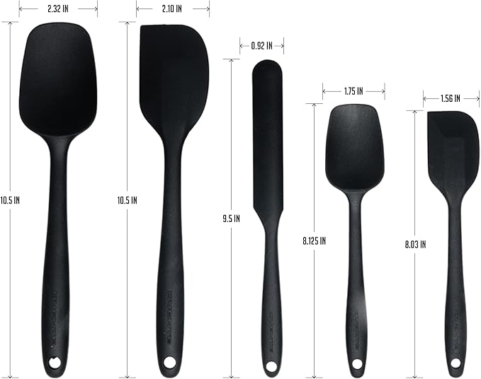 OVENTE Silicone Spatula Set of 5, Food Grade Rubber Spatula with High Heat Resistant, BPA-Free and Dishwasher Safe, Nonstick Kitchen Utensils for Baking, Cooking and Mixing, Black SP12305B