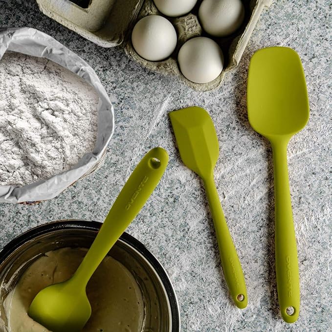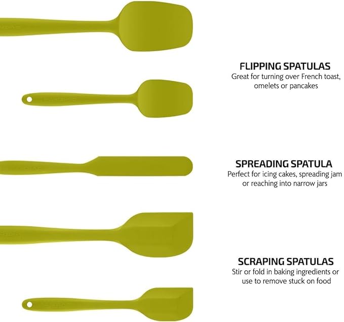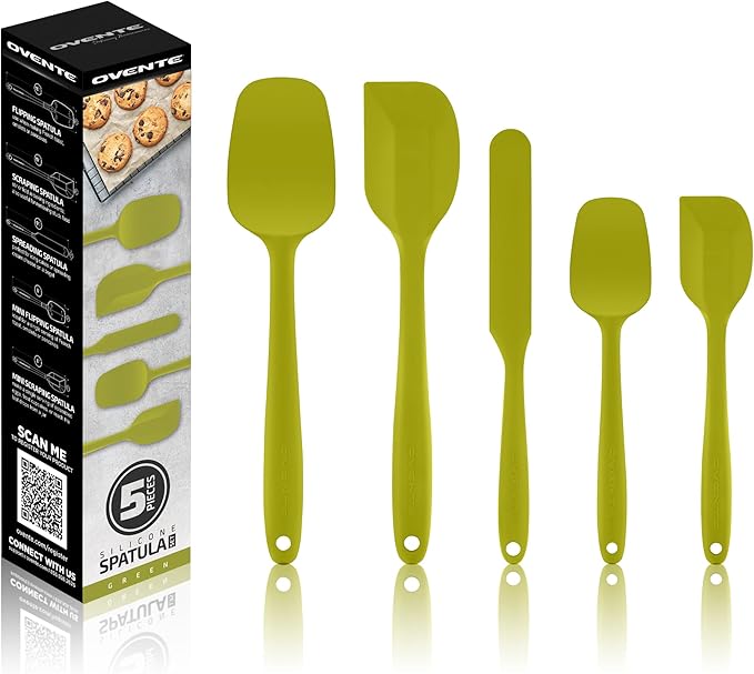 OVENTE Silicone Spatula Set of 5, Food Grade Rubber Spatula with High Heat Resistant, BPA-Free and Dishwasher Safe, Nonstick Kitchen Utensils for Baking, Cooking and Mixing, Green SP12305G