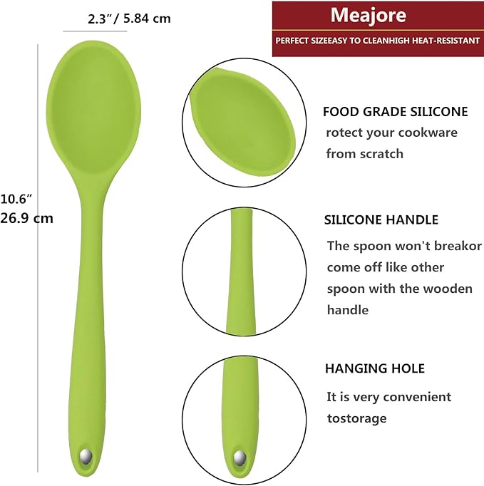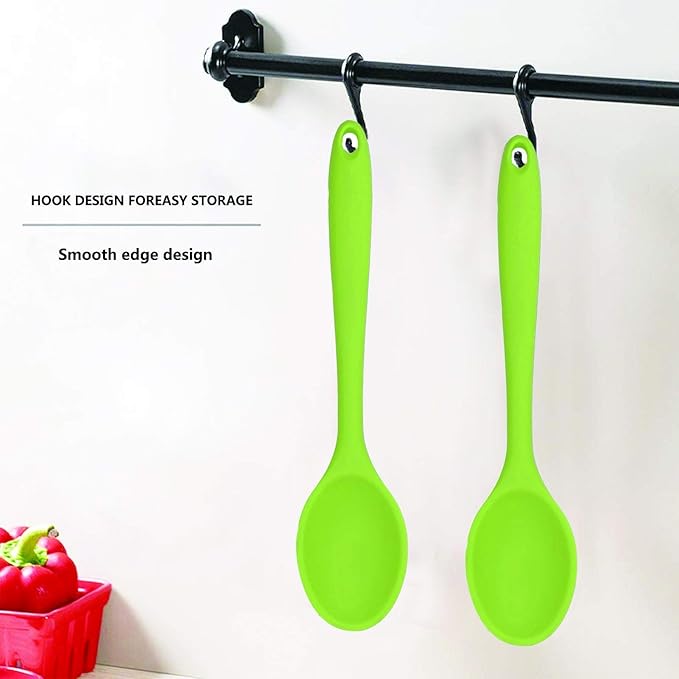 Meajore 2 Pcs Silicone Spoons for Cooking Heat Resistant, Hygienic Design Cooking Utensi Mixing Spoons for Kitchen Cooking Baking Stirring Mixing Tools (Green)