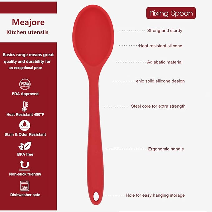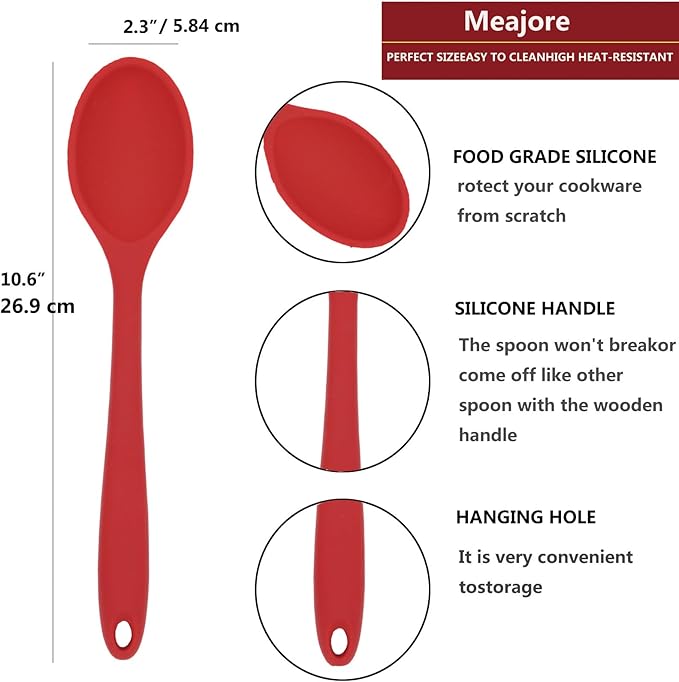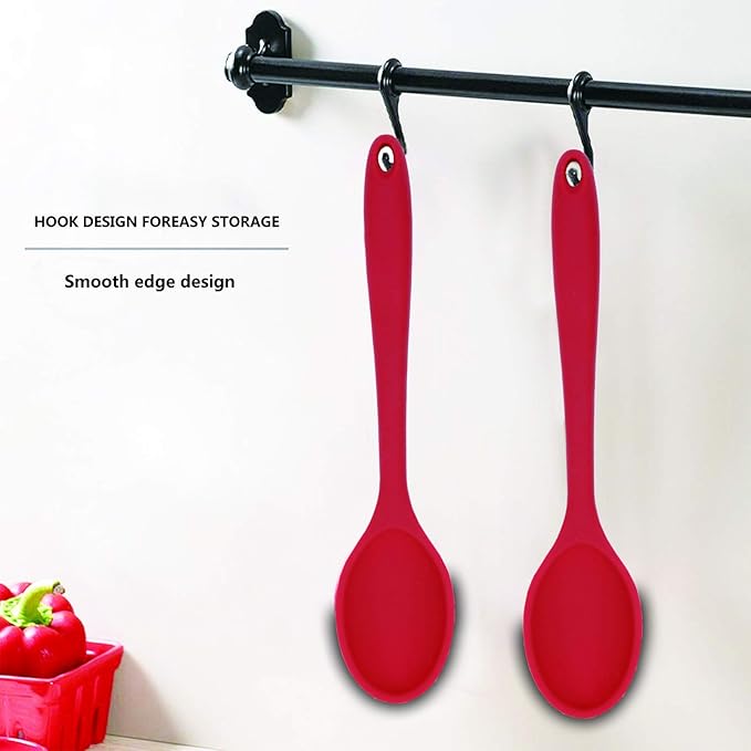 2 Pcs Silicone Spoons for Cooking Heat Resistant, Hygienic Design Cooking Utensi Mixing Spoons for Kitchen Cooking Baking Stirring Mixing Tools (Red)