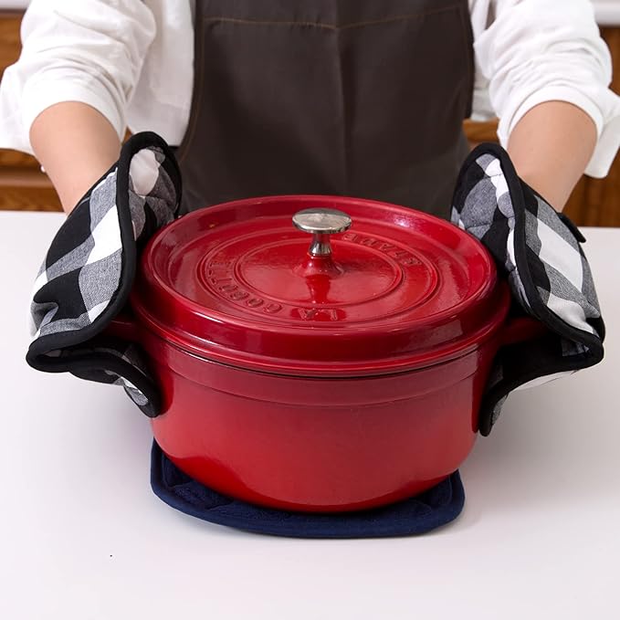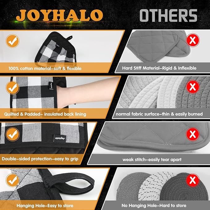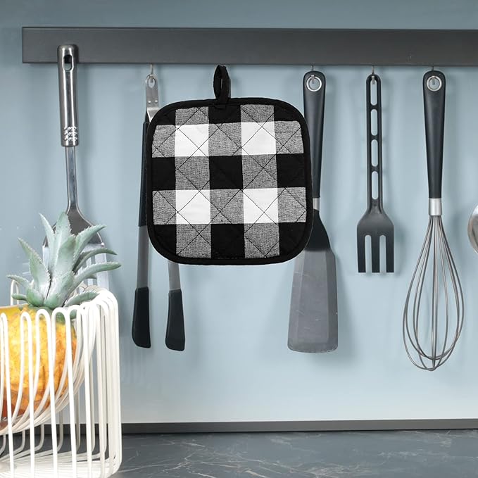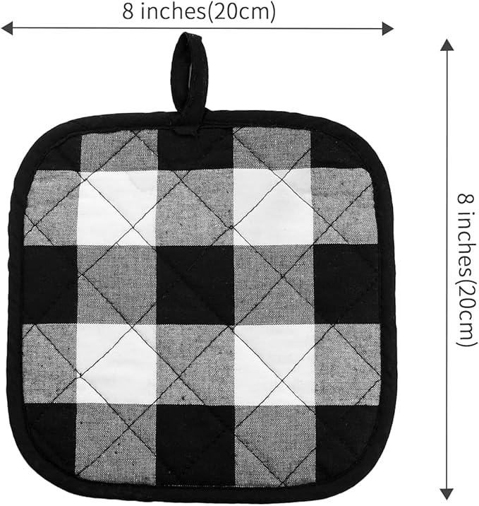 Joyhalo 4 Pack Pot Holders for Kitchen,Cotton Oven Holder with Great Heat Resistance,Non Slip Hot Pads for Kitchen Clearance,Black and White