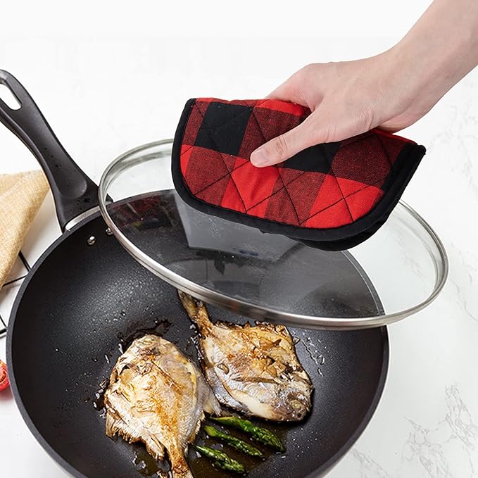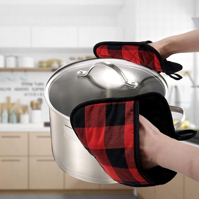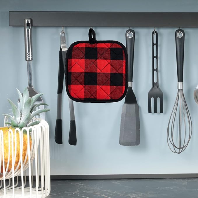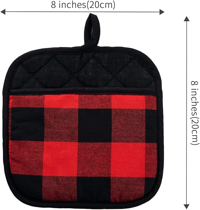 Joyhalo 4 Pack Pot Holders for Kitchen,Cotton Oven Holder with Great Heat Resistance,Non Slip Hot Pads for Kitchen Clearance,Black and Red