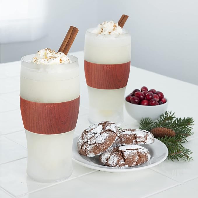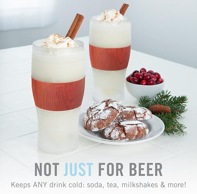 Host Freeze, Frozen Mugs, Freezable Pint Set, Beer Keep Your Drinks Cold, Double Walled Insulated Glasses, Tumbler for Iced Coffee, 16oz, Set of 2, Wood