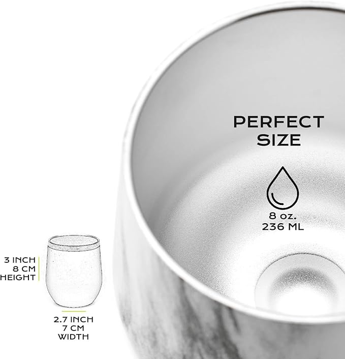 BALIBETOV 5 pcs large Yerba Mate Cup and Bombilla Kit, Includes one 8 oz Yerba Mate Gourd with Lid, Two Bombillas Mate Straw and one cleaning brush (Marble, 8.00)