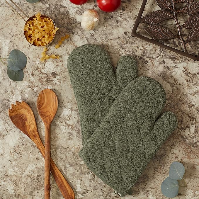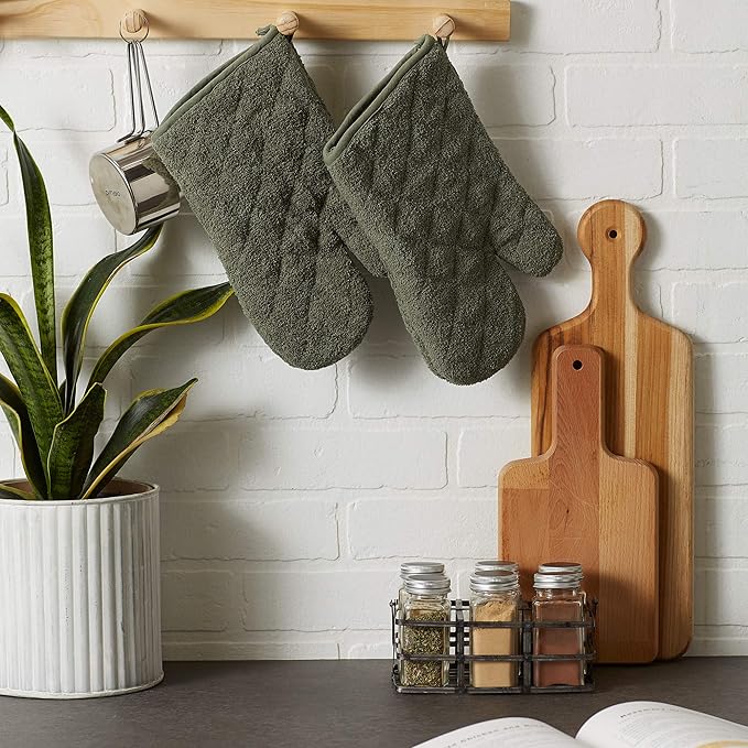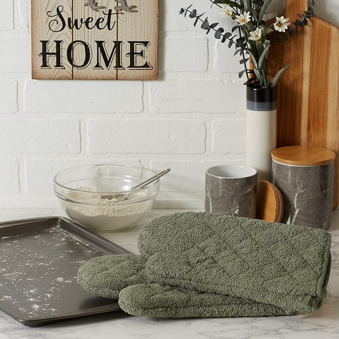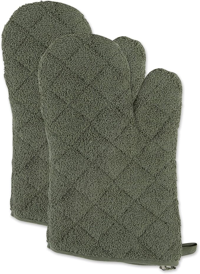 DII Basic Terry Collection 100% Cotton Quilted, Oven Mitt, Artichoke, 2 Piece