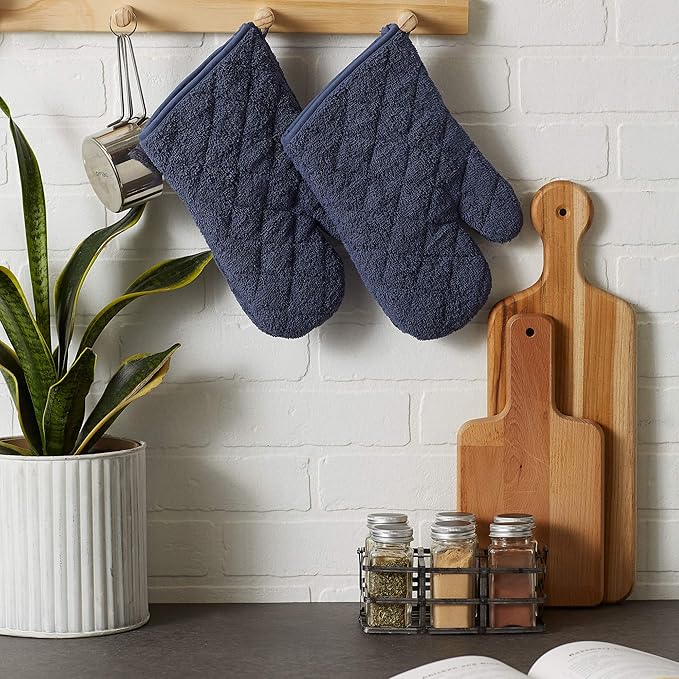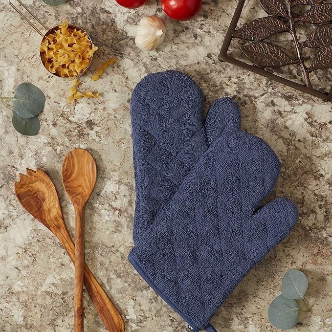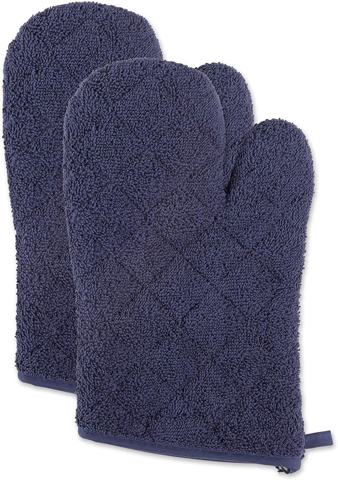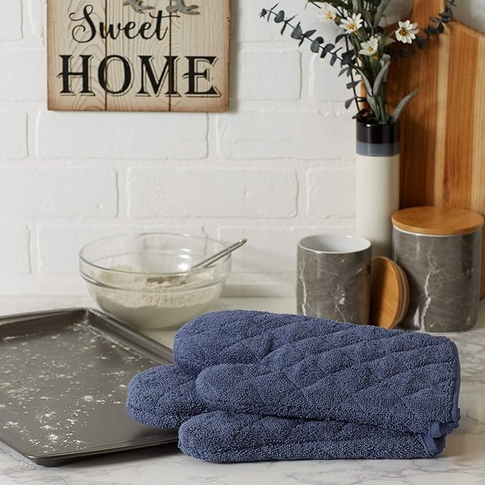 DII Basic Terry Collection 100% Cotton Quilted, Oven Mitt, French Blue, 2 Piece