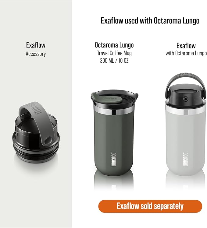 WACACO Octaroma Lungo Vacuum Insulated Coffee Mug, Double-wall Stainless Steel Travel Tumbler With Drinking Lid, 10 fl oz(300ml), Dim Grey