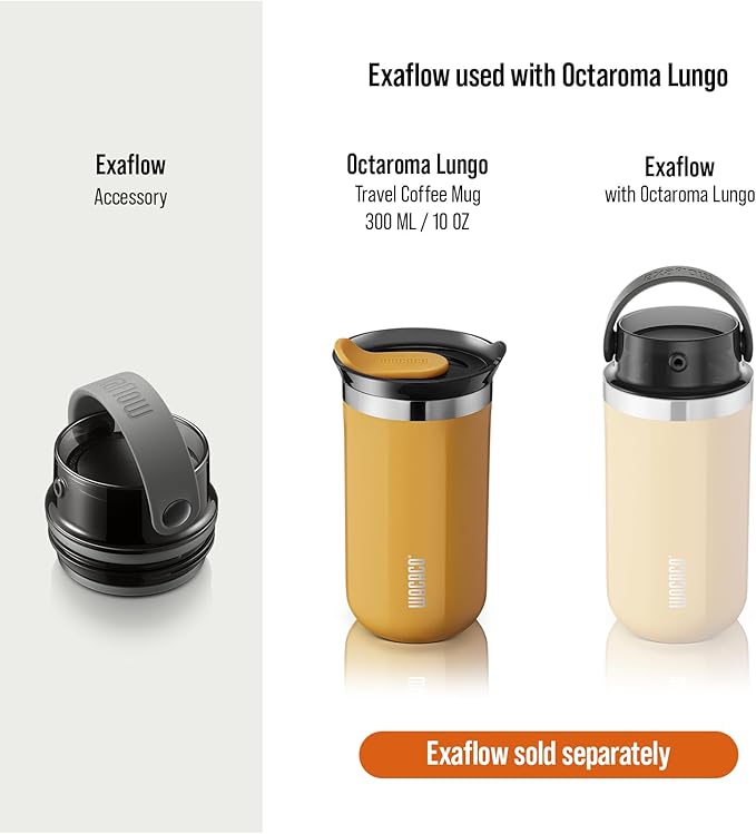 WACACO Octaroma Lungo Vacuum Insulated Coffee Mug, Double-wall Stainless Steel Travel Tumbler With Drinking Lid, 10 fl oz(300ml), Amber Yellow