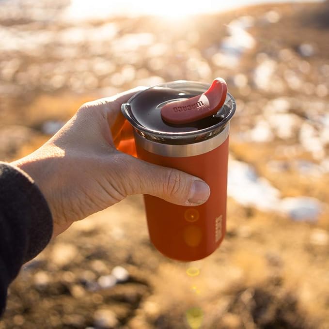 WACACO Octaroma Lungo Vacuum Insulated Coffee Mug, Double-wall Stainless Steel Travel Tumbler With Drinking Lid, 10 fl oz(300ml), Carmine Red