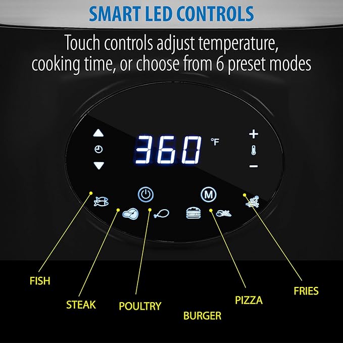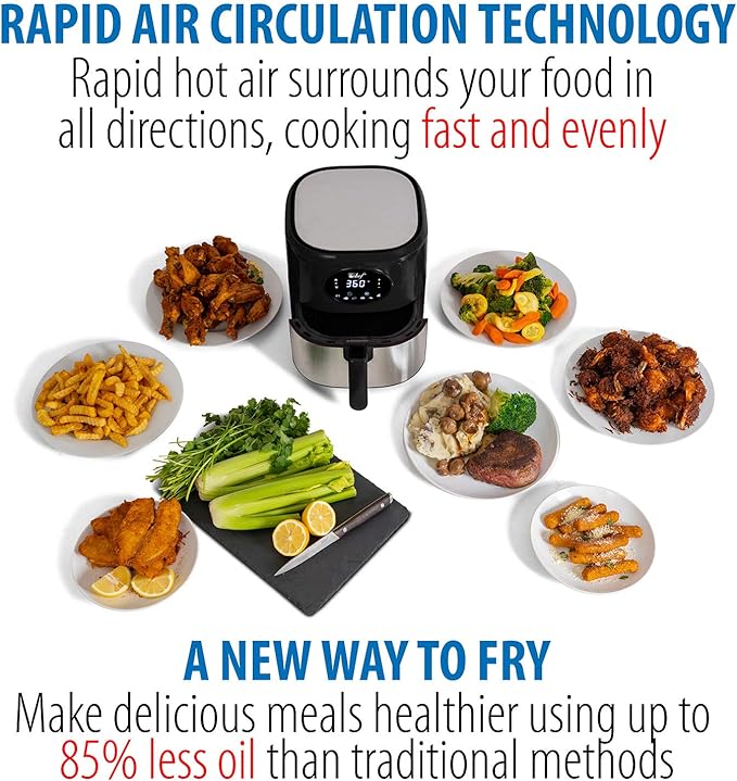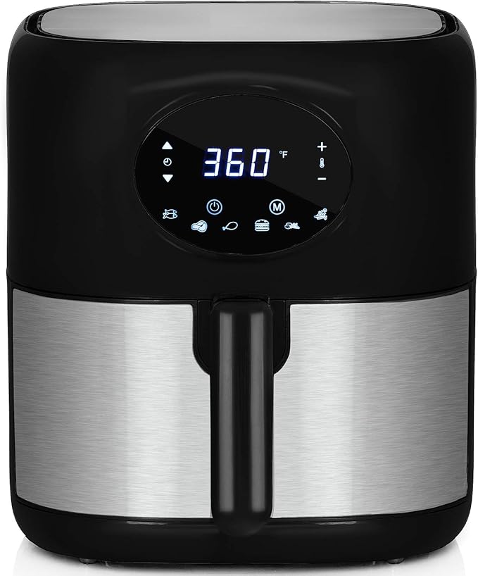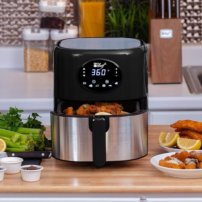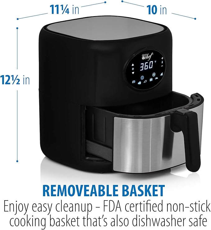 Deco Chef 3.7QT Digital Air Fryer with 6 Cooking Presets, LED Touch Controls, Adjustable Temperature and Time, Detachable Dishwasher Safe Non-Stick Basket, ETL Certified, Black