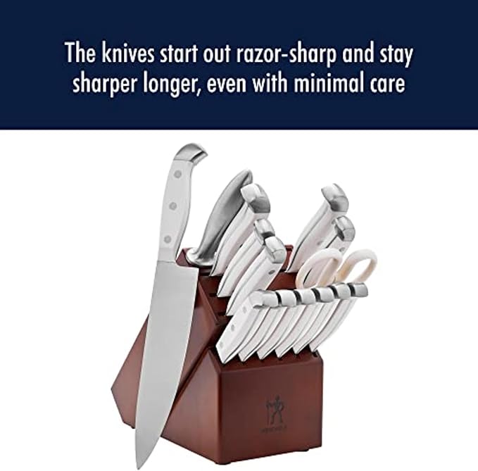 HENCKELS Statement Razor-Sharp 15-Piece White Handle Knife Set with Block, German Engineered Knife Informed by over 100 Years of Mastery